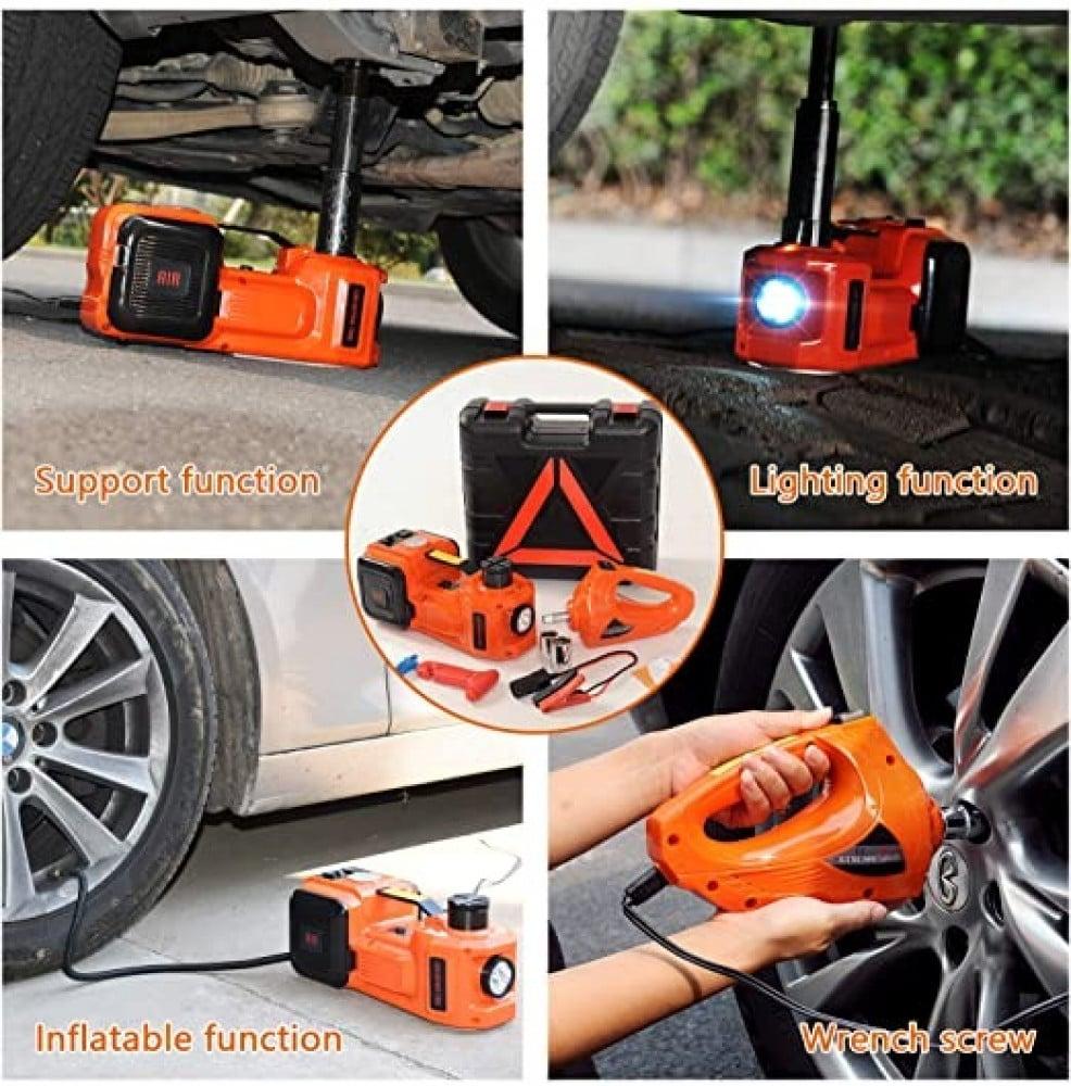 رافعة تاوا للسيارة مع مفتاح ربط مطرقي كهربائي، ادوات سيارة مع مضخة مدمجة لنفخ الاطارات ومصباح LED ومطرقة امان، عدة ادوات 4 في 1 لاصلاح اطارات السيارة حمولة 5 طن 12 فولت